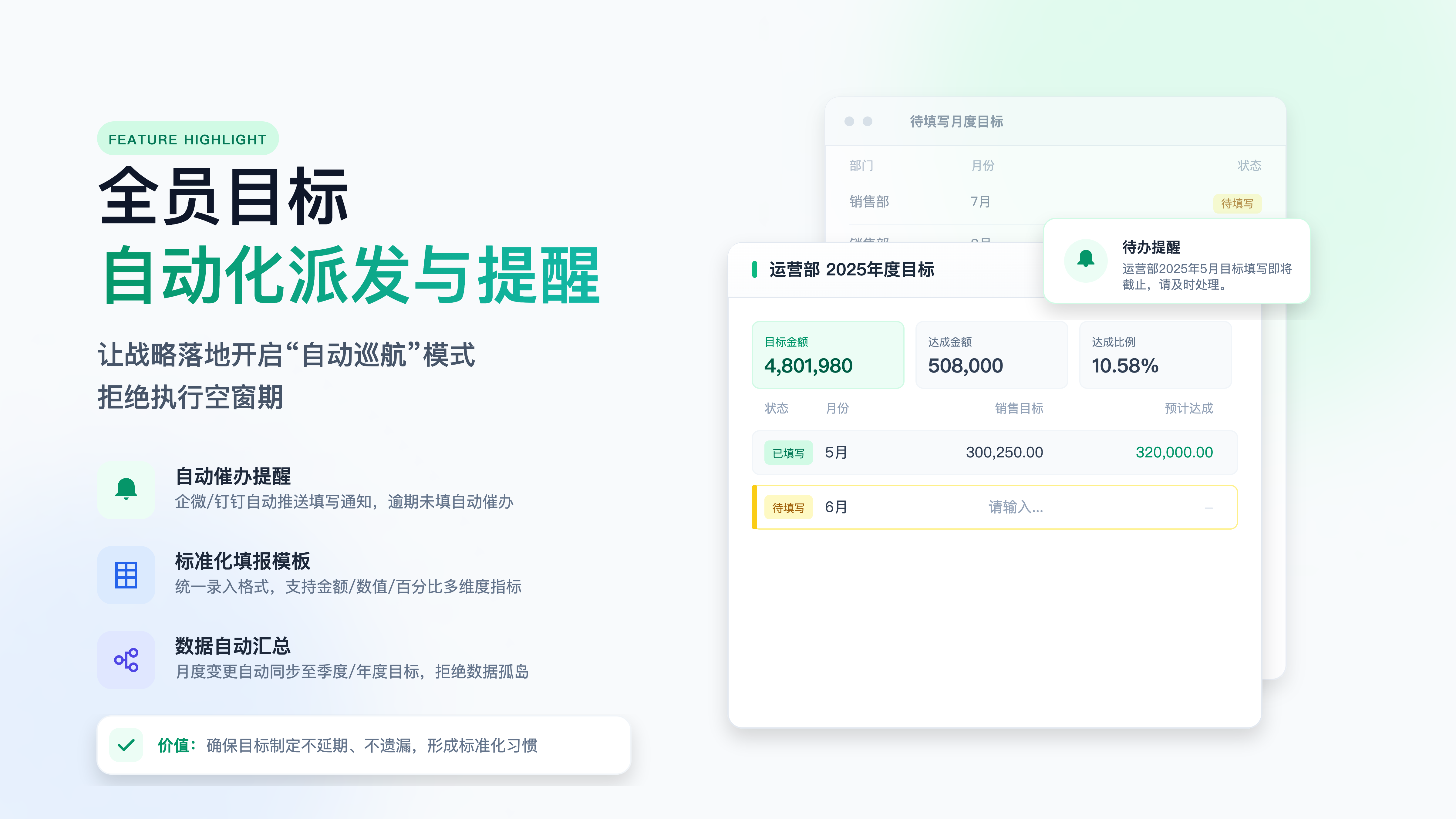 ✨ 亮点一:全员目标自动化派发与提醒,让战略落地"自动巡航"
