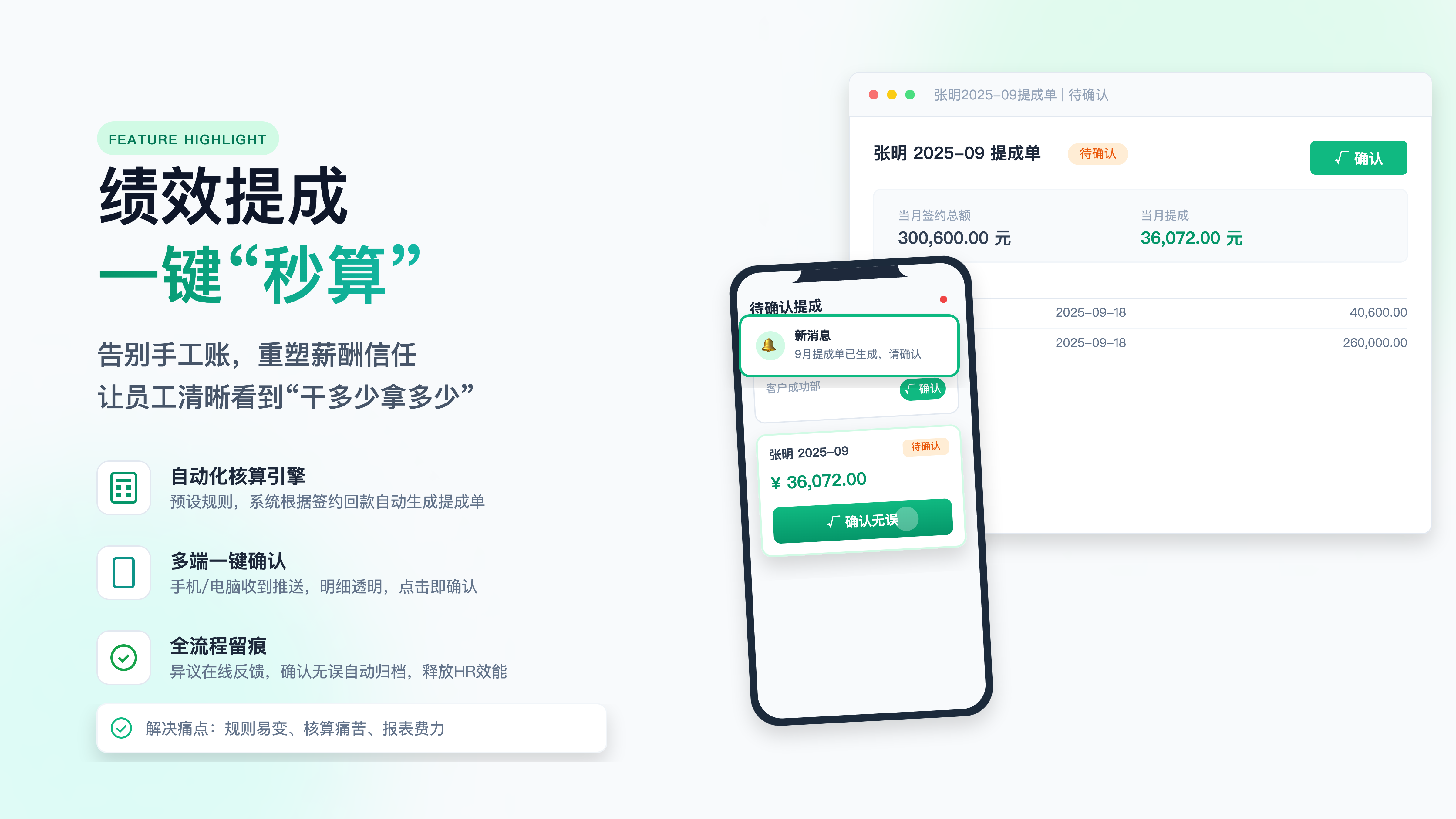 ✨ 亮点三:告别"手工账",绩效提成一键"秒算"