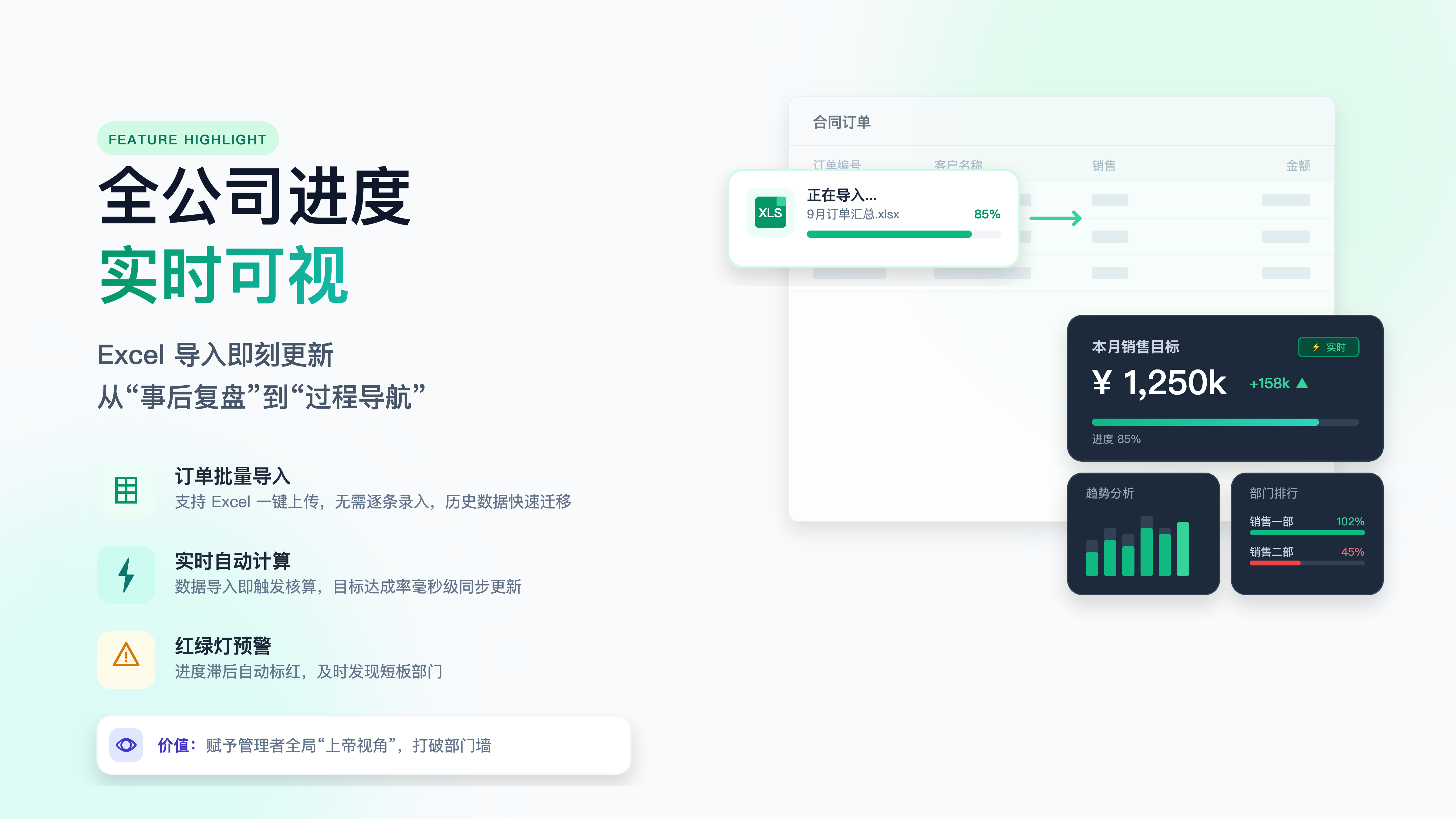 ✨ 亮点二:从"事后复盘"到"过程导航",全公司进度实时可视